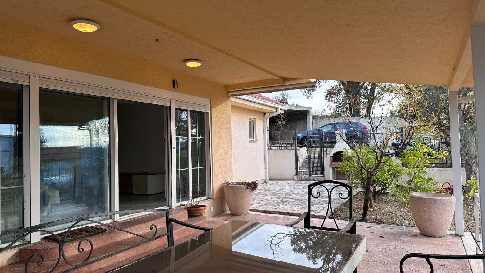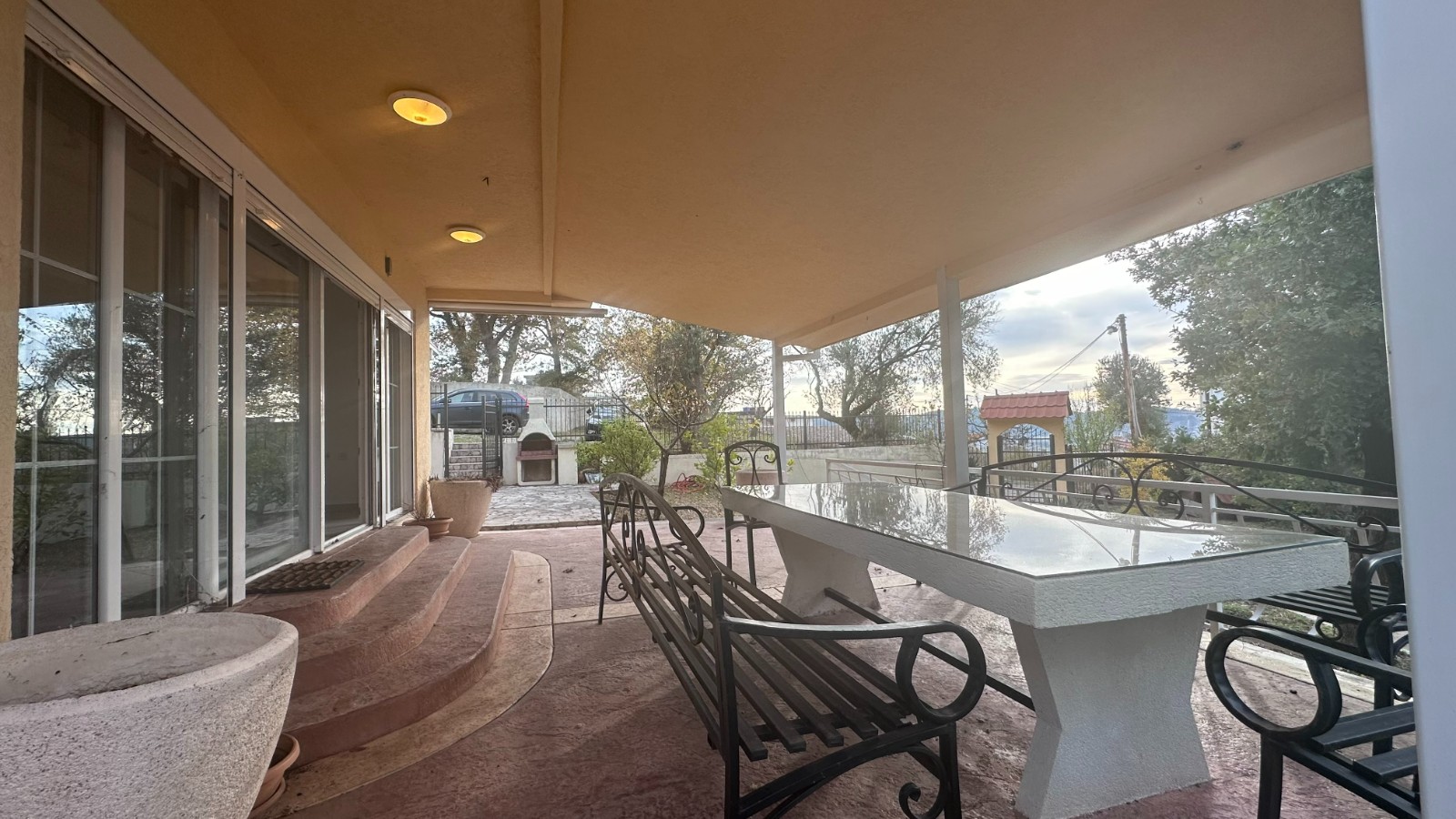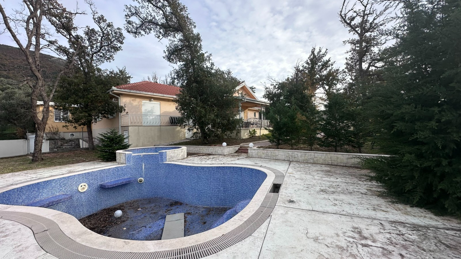 Kuća ima dva ulaza, prelepu veliku verandu na koju se izlazi iz dnevnog boravka i master spavaće sobe. Dvorište je ograđeno i veoma prostrano sa velikim bazenom. Sastoji se iz velike kuhinje i trpeyarije, prostranog dnevnog boravka sa kaminom, 4 spavaće sobe – od kojih je jedna master sa vojim kupatilom- dva kupatila i gostinskog toaleta. Na placu je smeštena i pomoćna kućica površine oko 35m2 koja se sastoji iz jedne sobe i kupatila.