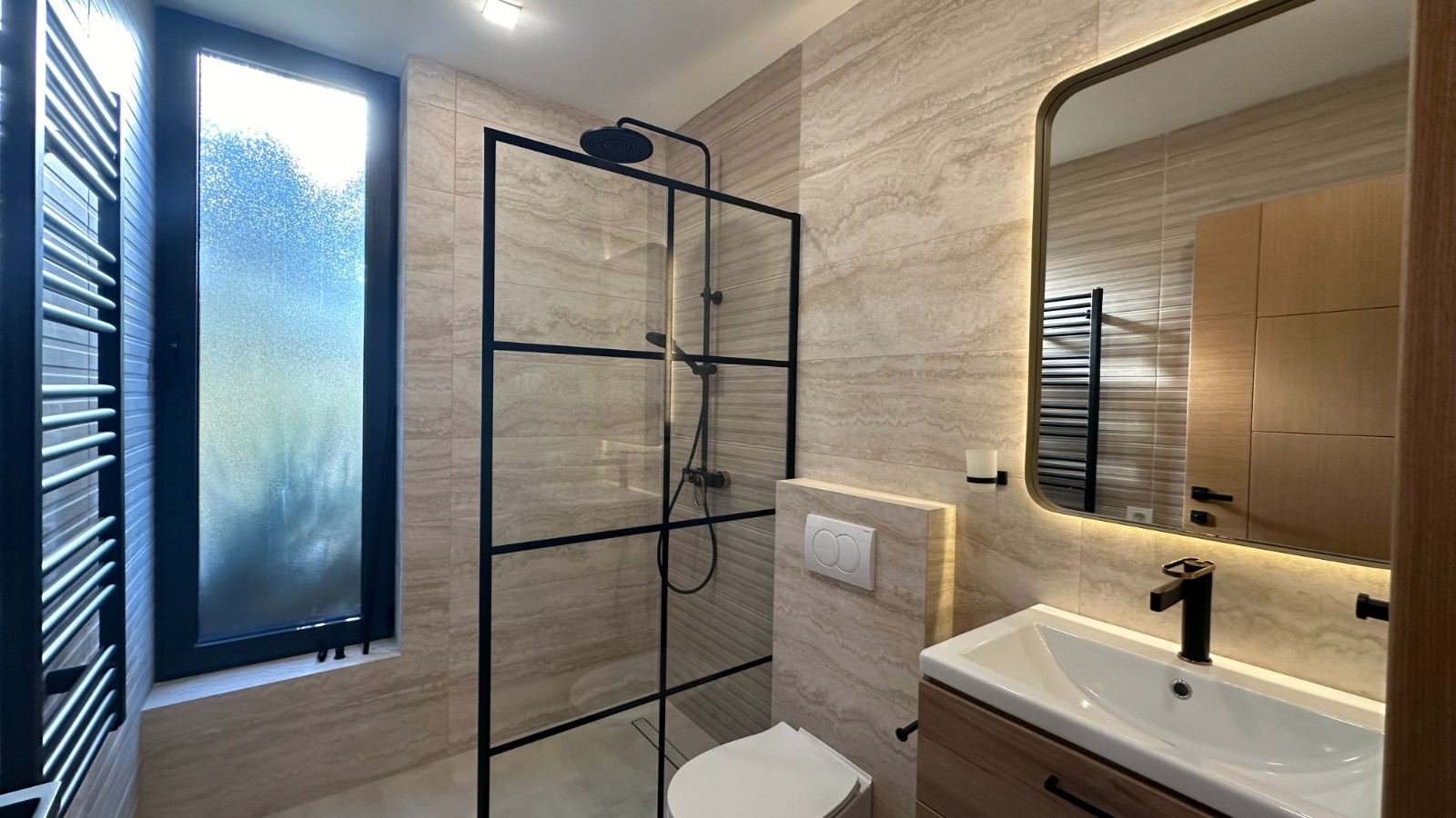 Na spratu su smještene 3 spavaće sobe i dva kupatila. Jedna od soba je master sa svojim kupatilom i garderoberom. Na ovom spratu se nalazi i jos jedan slobodan prostor koji se lagano može pretvoriti u još jednu sobu.