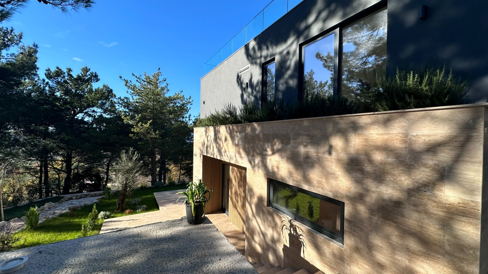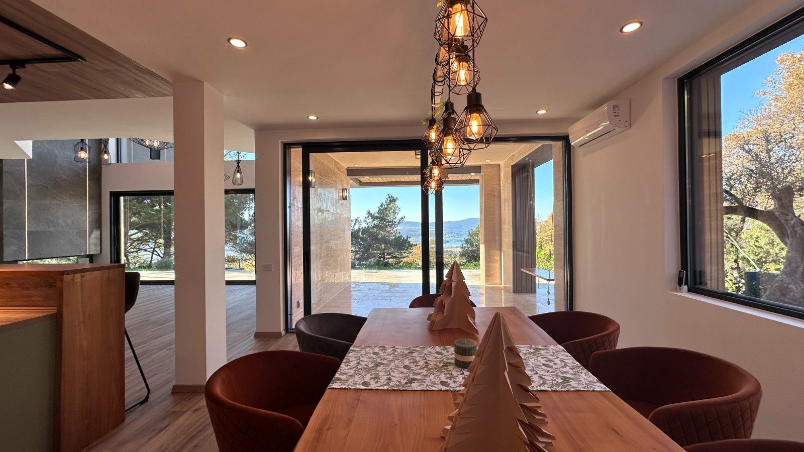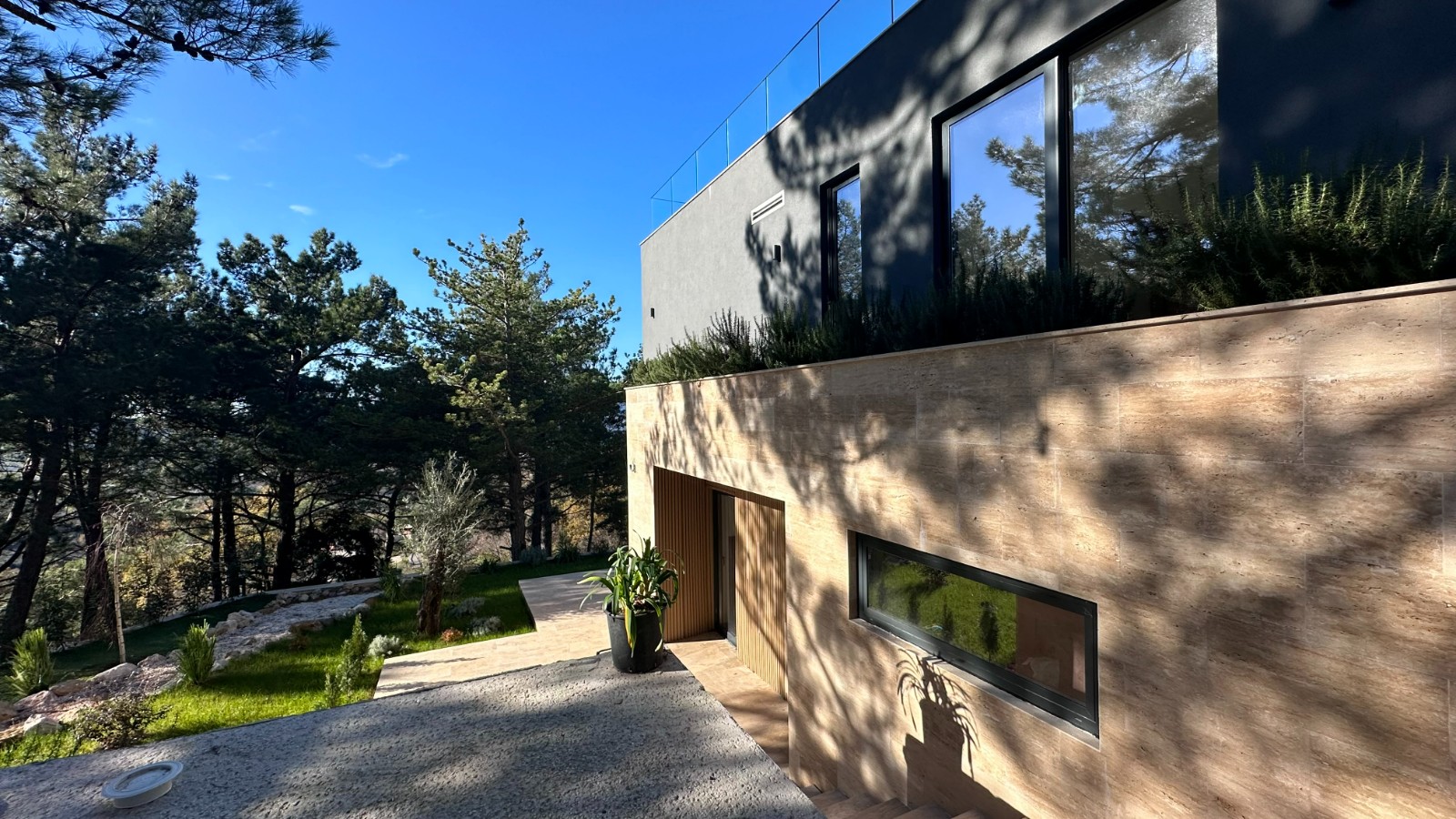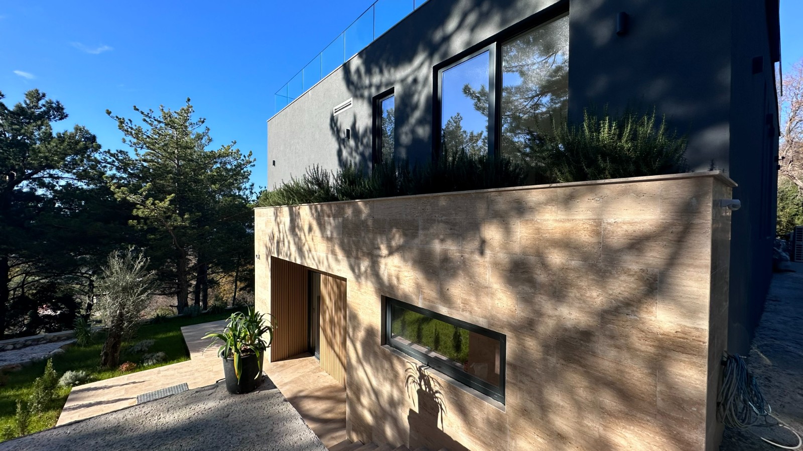 Ova prelijepa vila vrhunskog dizajna je rađena od najkvalitetnijih materijala prirodnog porijekla - staklo, kamen, drvo -nudeći vam vrhunski spoj luksuza i prirode. Savršeno se uklopila u okolni ambijent, smještena u borovoj šumi sa odličnom mikroklimom sa fantastičnim pogledom na zaliv. Pružiće vam apsolutnu privatnost, uživanje u prirodi i nezaboravne zalaske sunca.