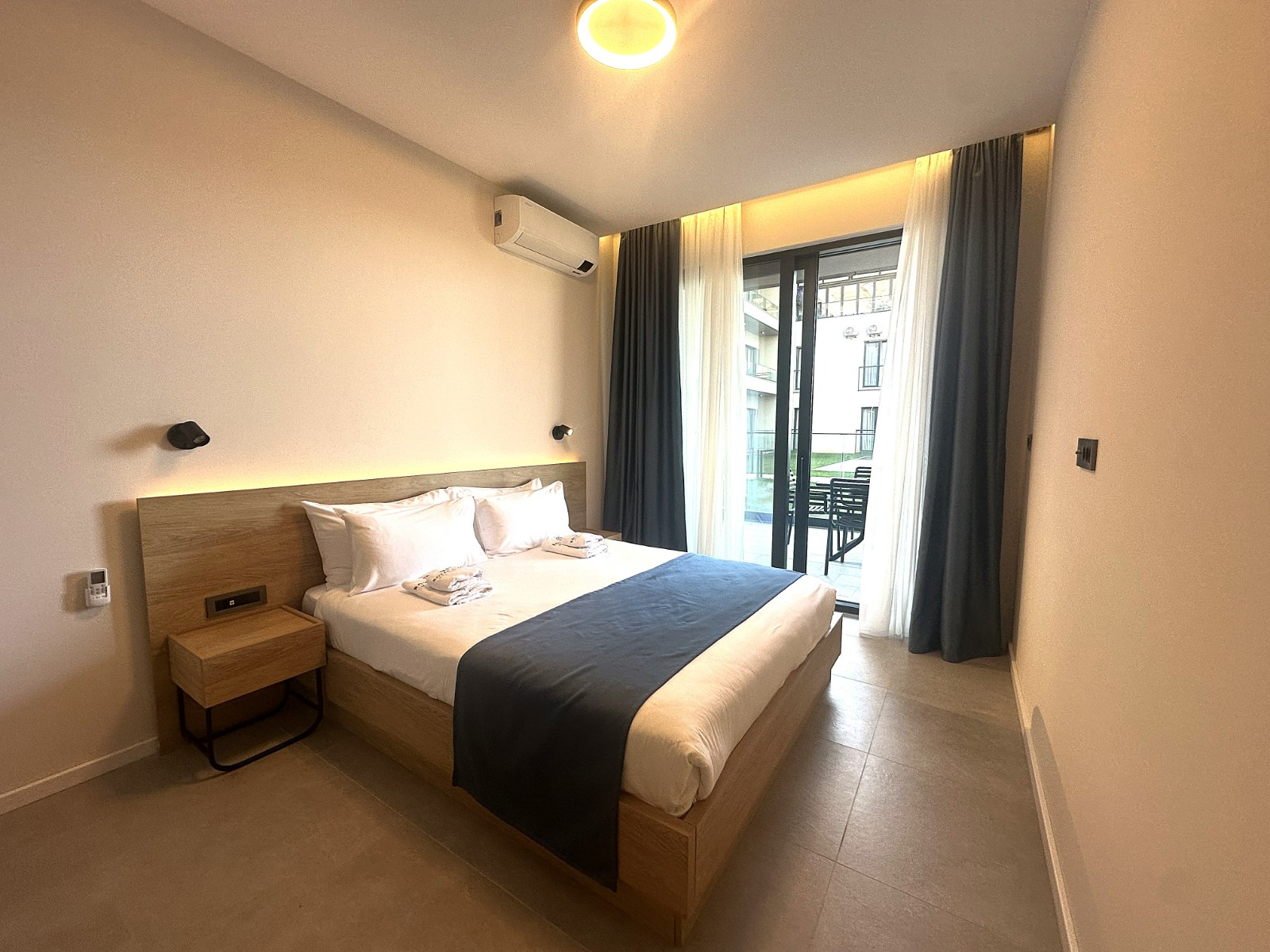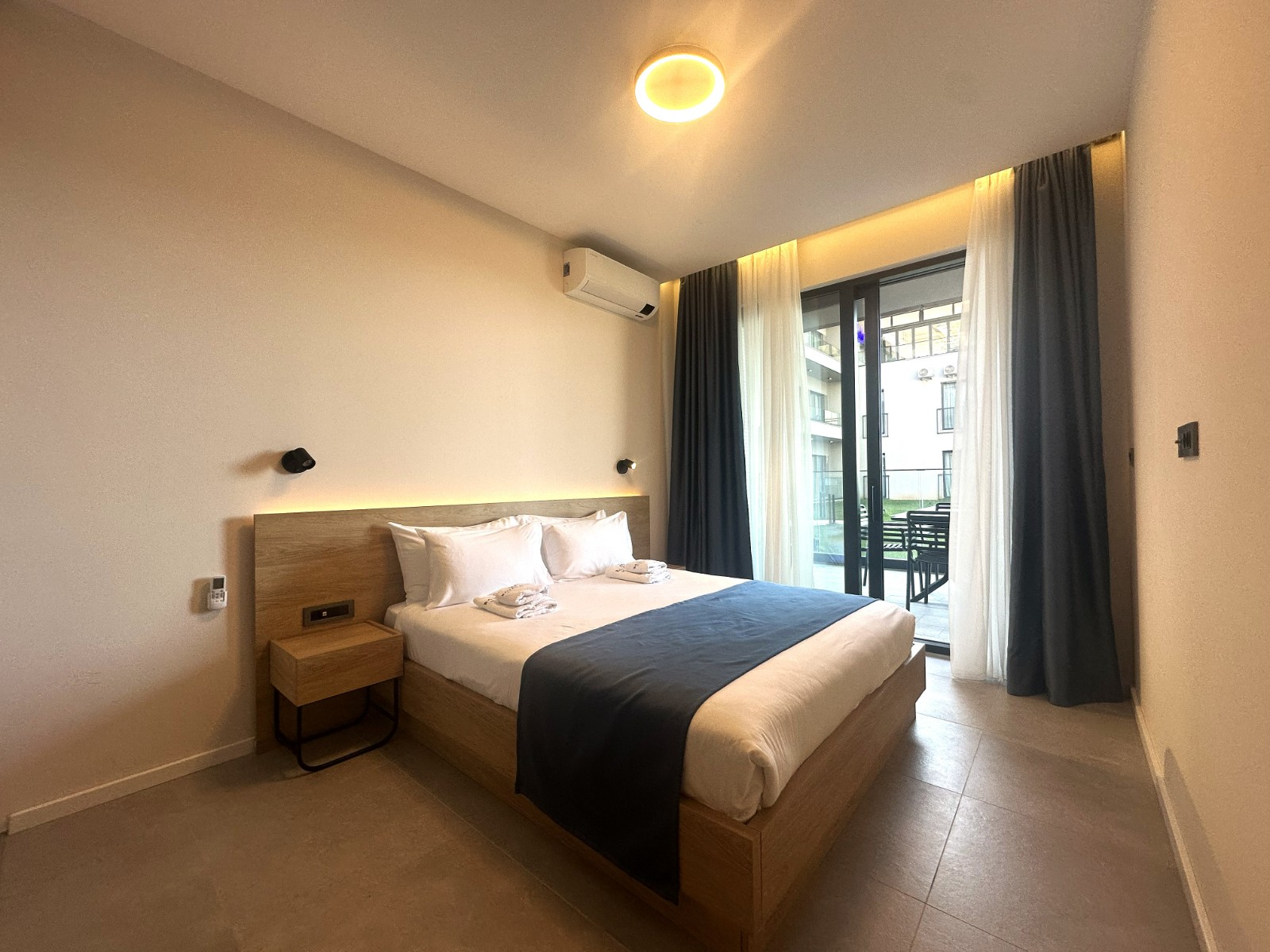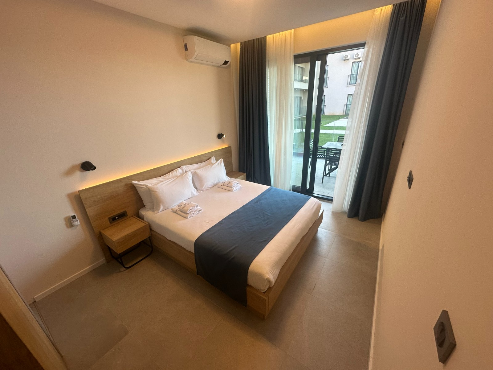 Stan se sastoji iz open space dnevnog boravka sa kompletno opremljenom kuhinjom i trpezarijskim djelom, dvije spavaće sobe i kupatila sa walk-in tuš kabinom. Na terasu se izlazi iz dnevnog boravka i jedne spavaće sobe. Korisna površina stana je 51m2, dok je terasa tipa bašte površine 19m2 i pruža fenomenalan pogled na more i Zaliv.