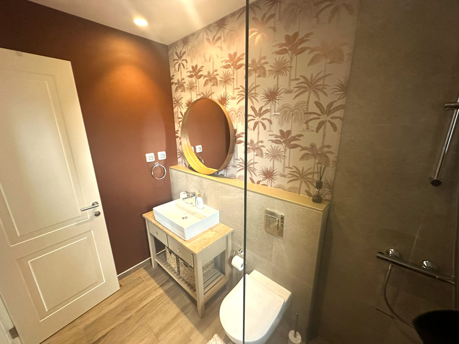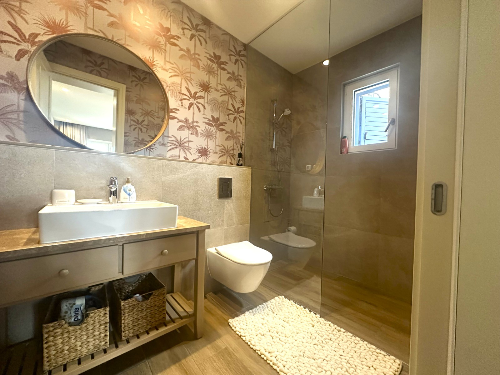 Stan je kompletno dizajnerski namješten i opremljen bijelom tehnikom - ves masina, masina za sudove, kafe aparat, klima.