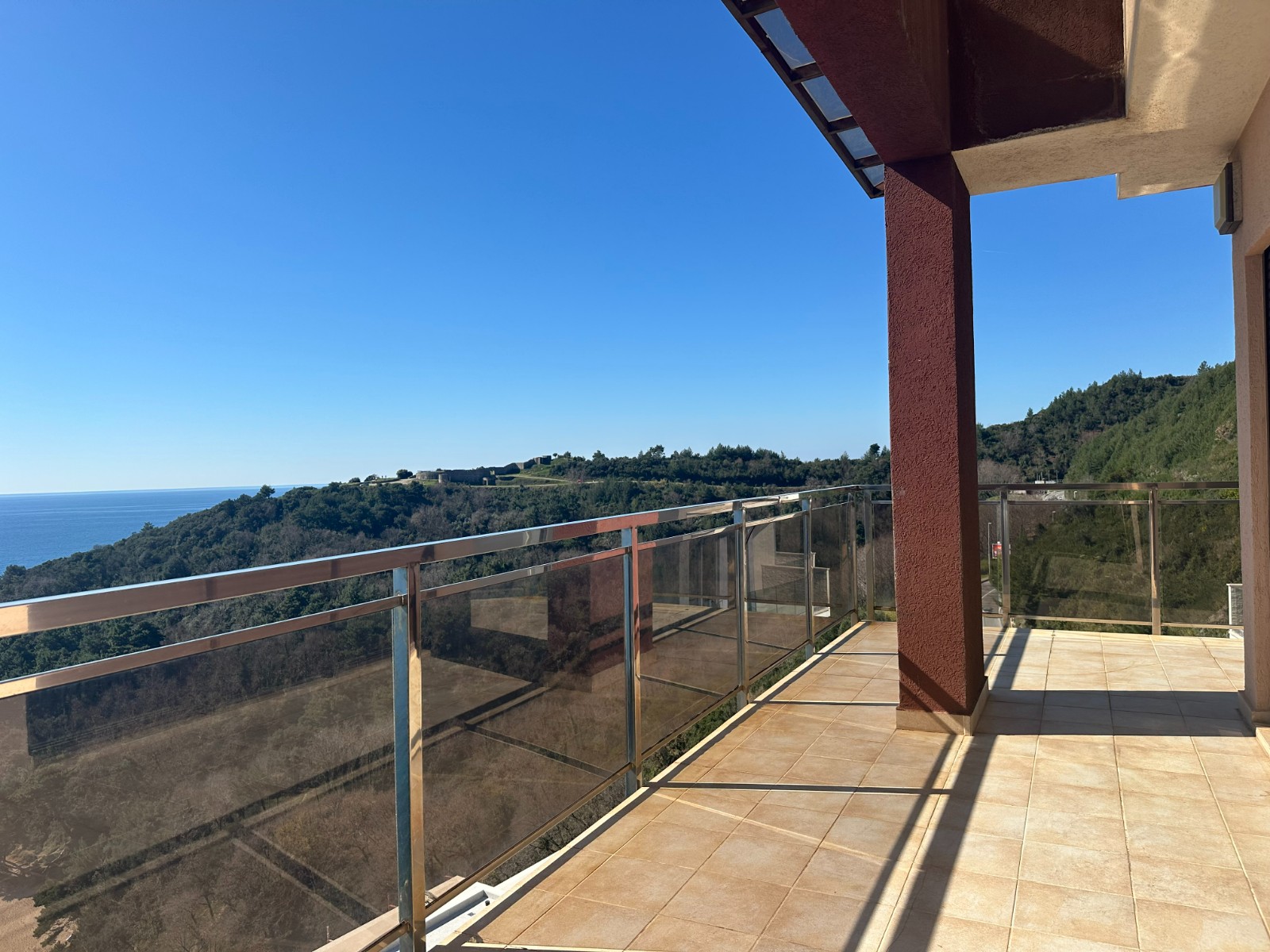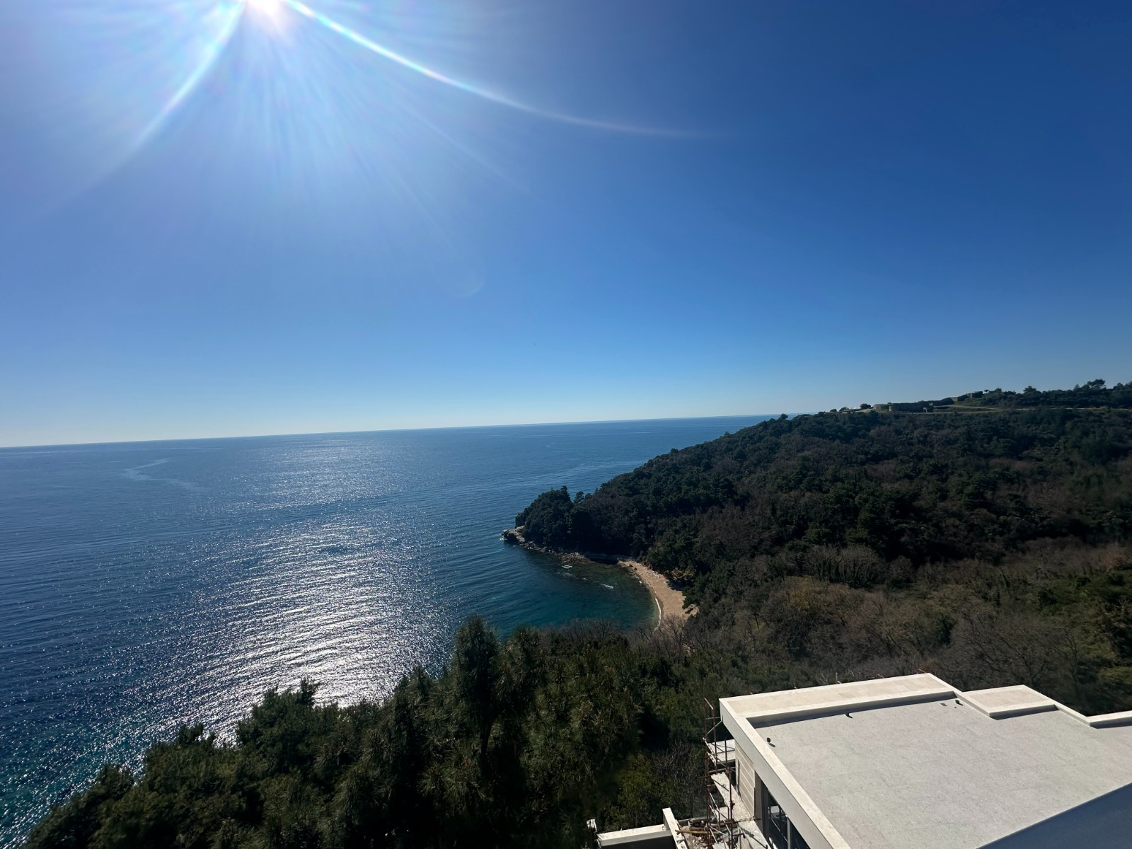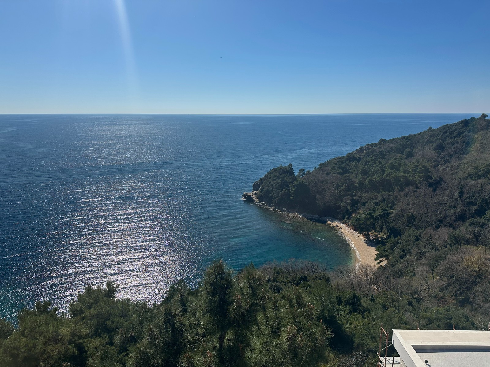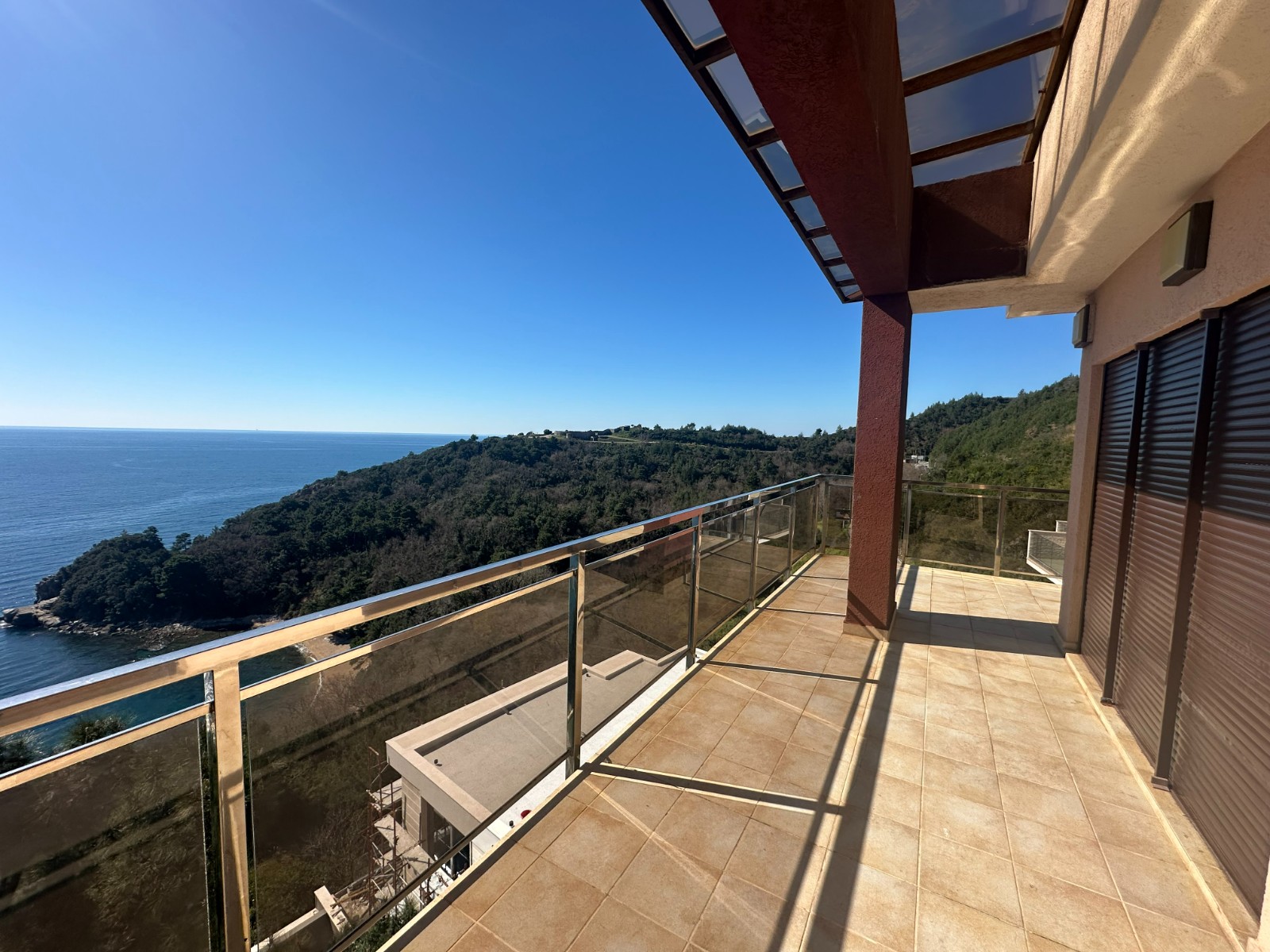 Vanjska stolarija je kvalitetna aluminijumska sa roletnama. Terasna vrata iz dnevnog boravka su klizna sa panoramskim staklima odakle se izlazi na veliku terasu sa fantastičnim pogledom na more i plažu Mogren.