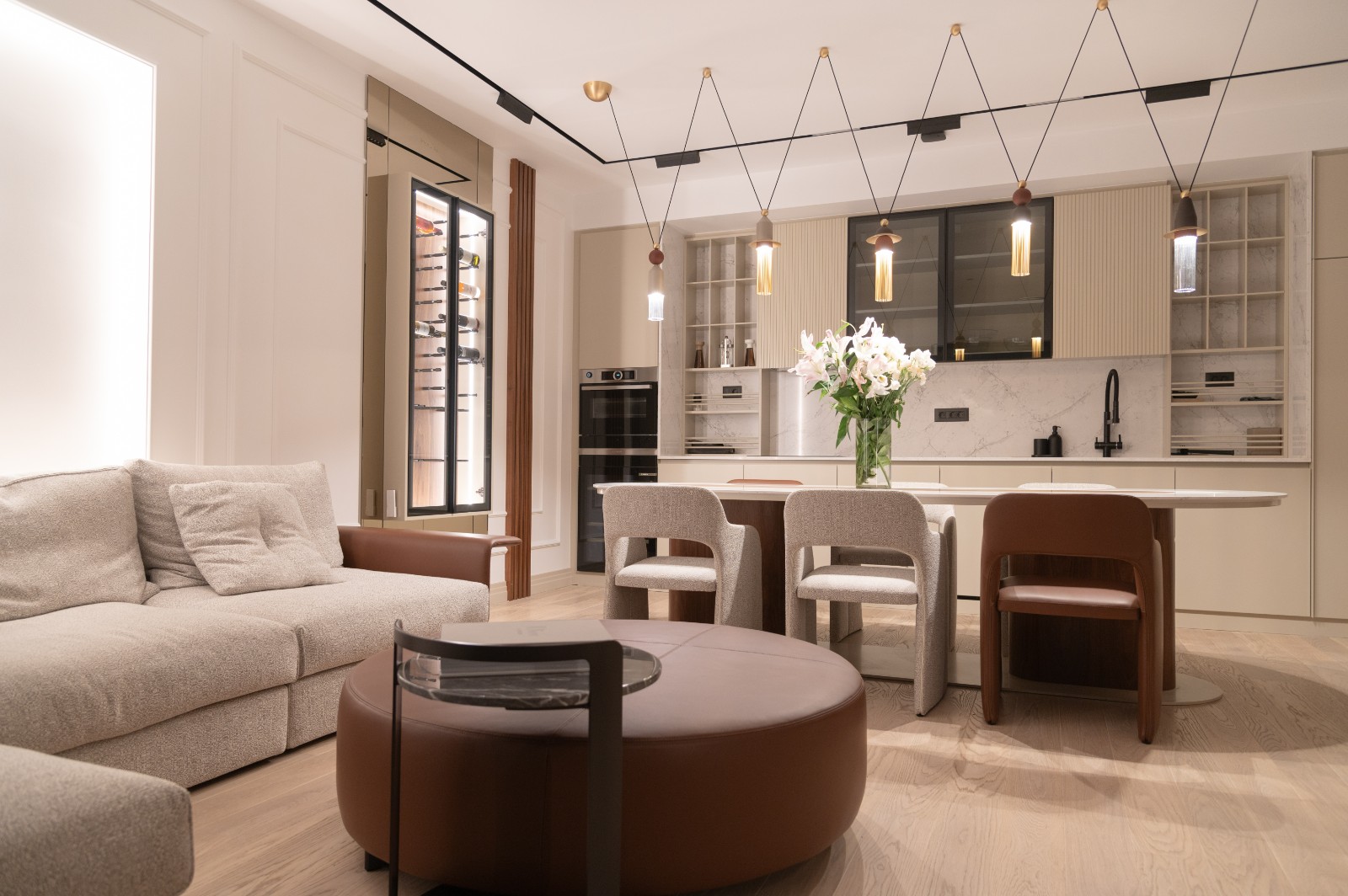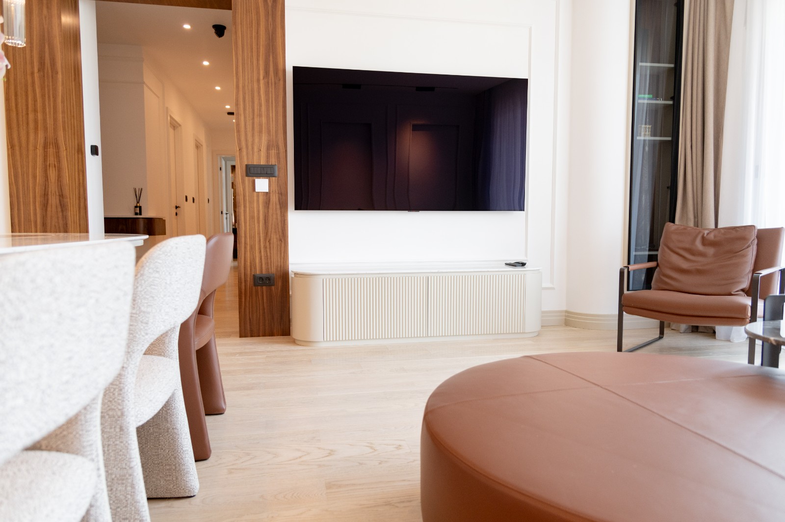 U okviru naše ponude izdvajamo ovu jedinstvenu nekretninu. Stan je rađen po mjeri u custom made stolarskim radovima. Stanari ovog objekta na raspolaganju imaju sve neophodno za komforan život u okviru kompleksa - tržni centar, teretane, restorane, spa centre, šetalište pored rijeke i sve ostale usluge.