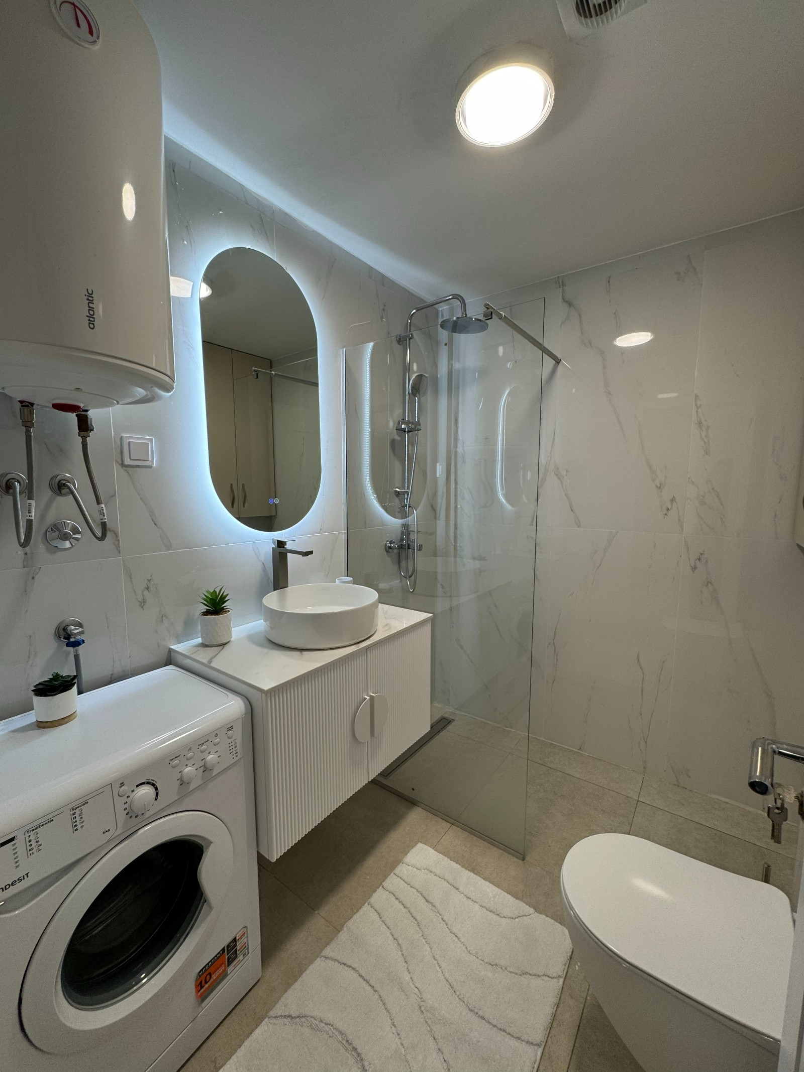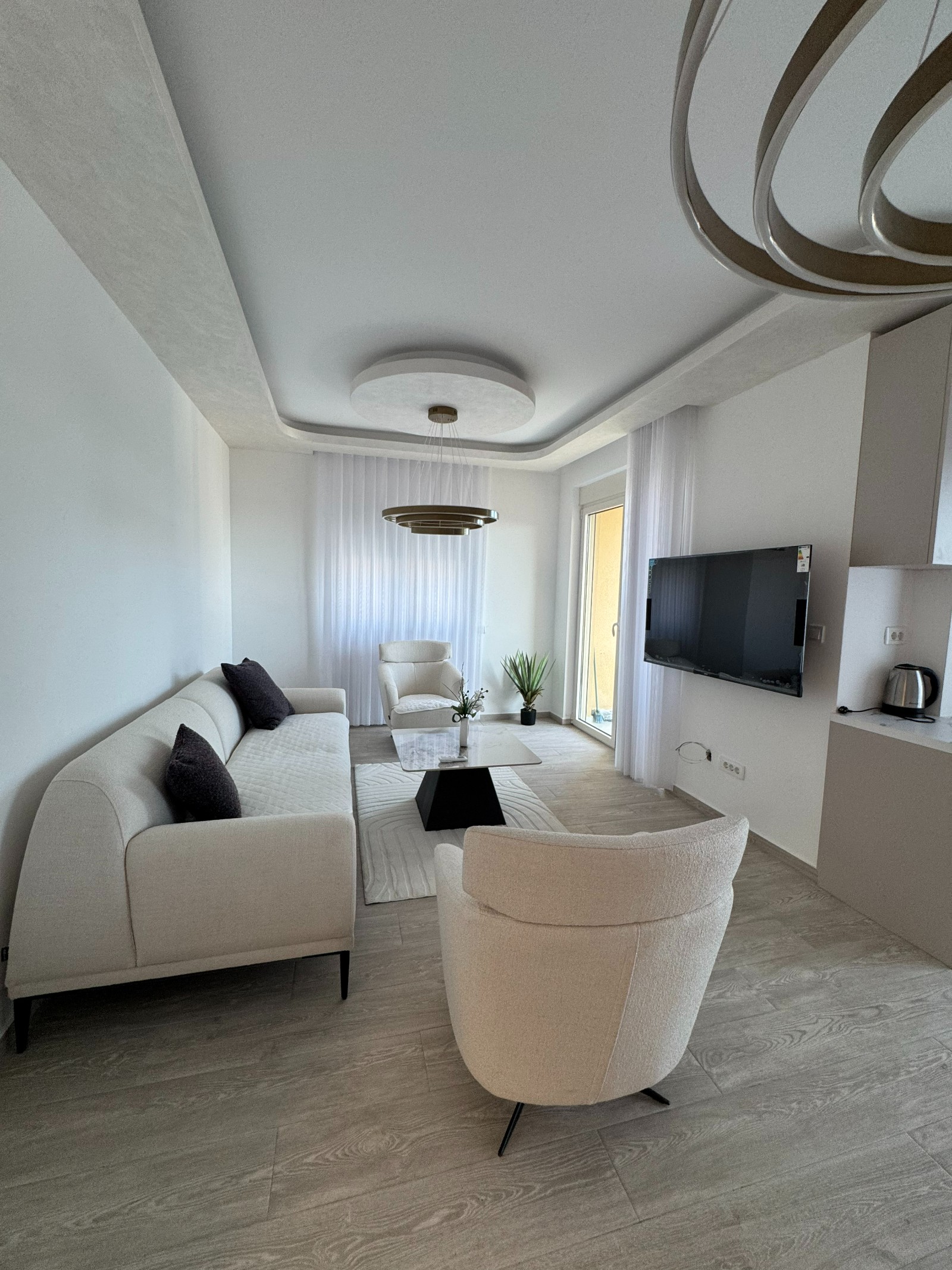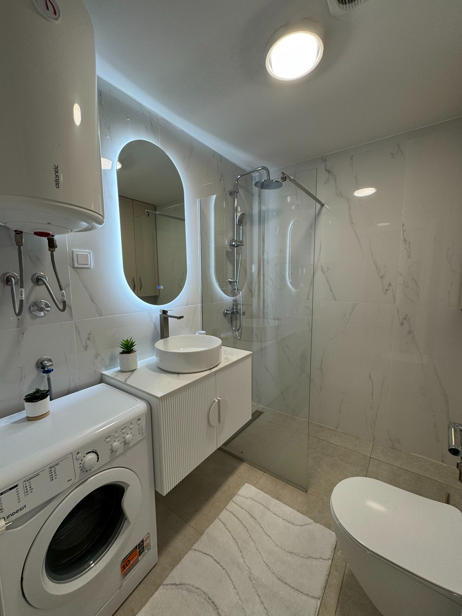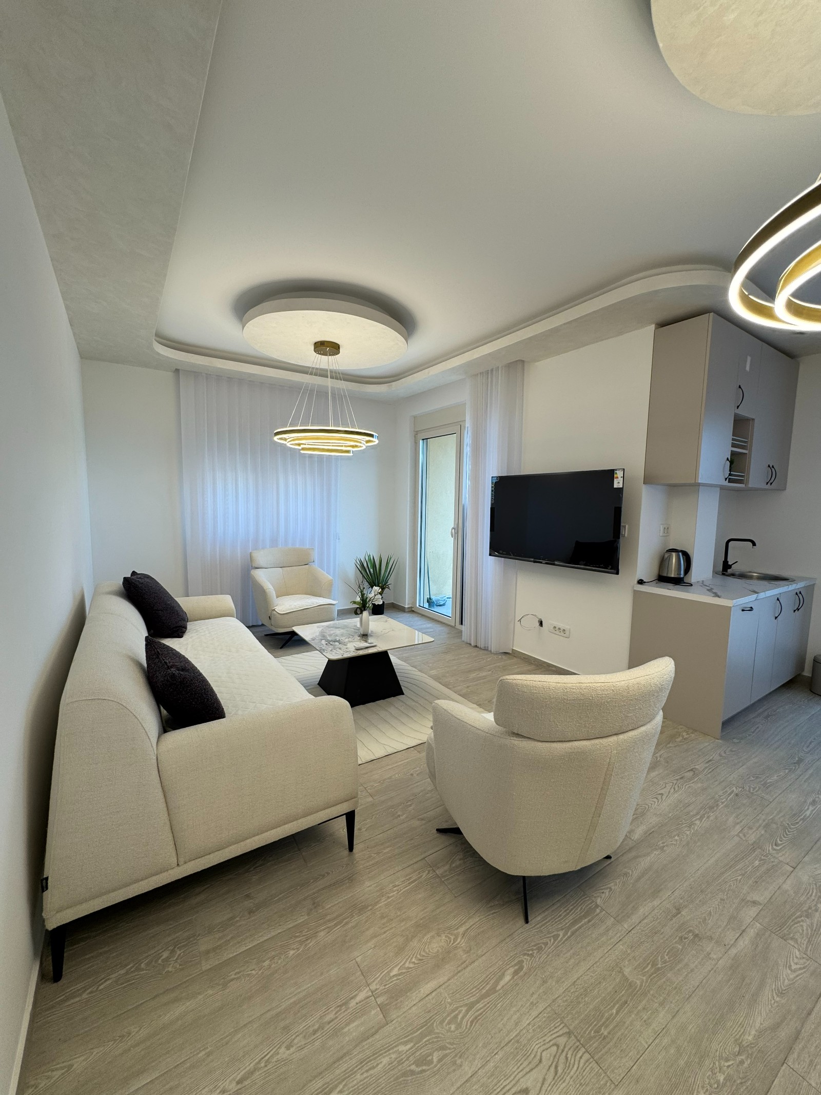 Stan je komforan dvosoban u kvalitetnoj novogradnji na dobroj poziciji u Bečićima. Luksuzno namješten i opremljen, sa pogledom na more.
