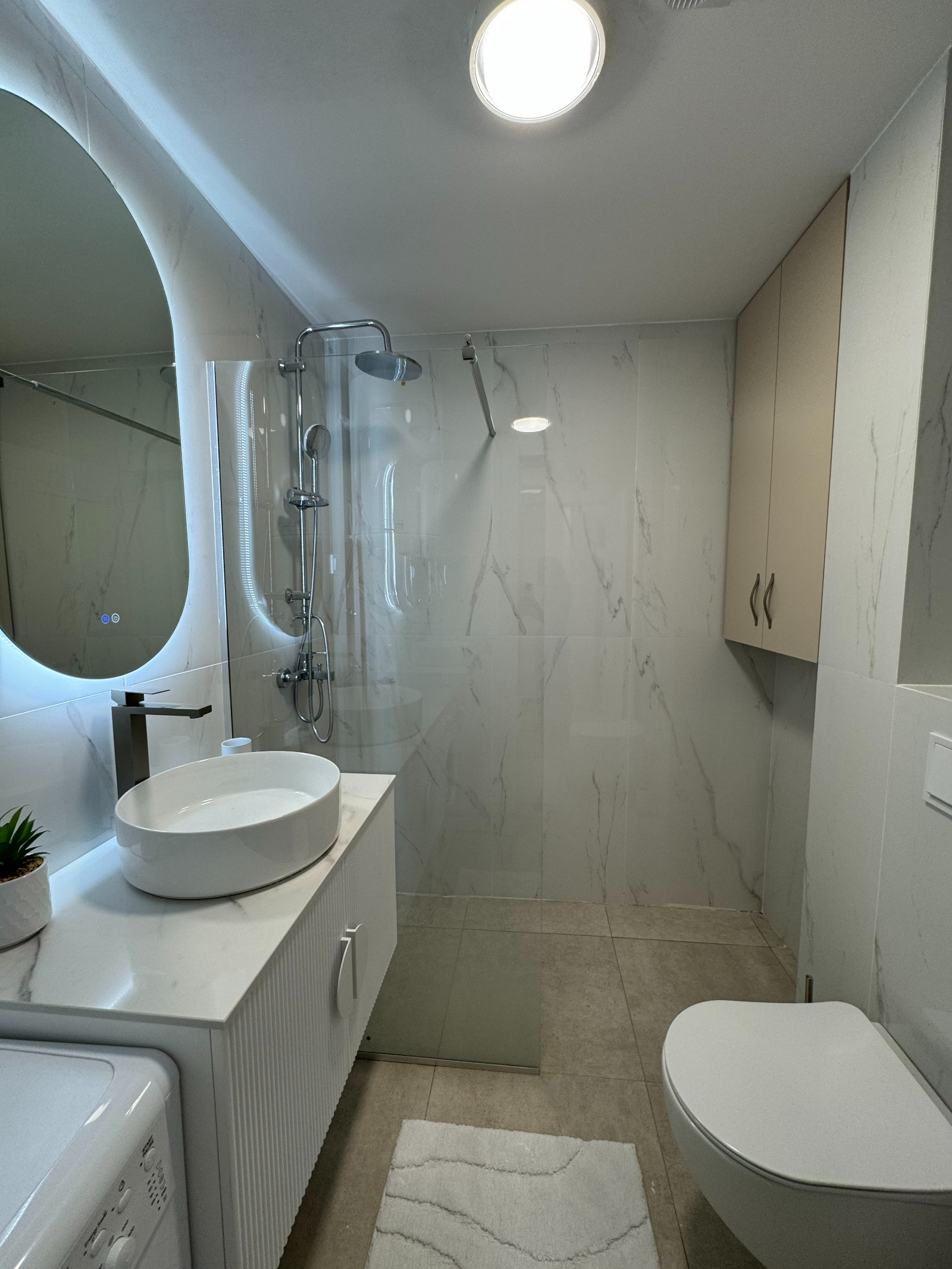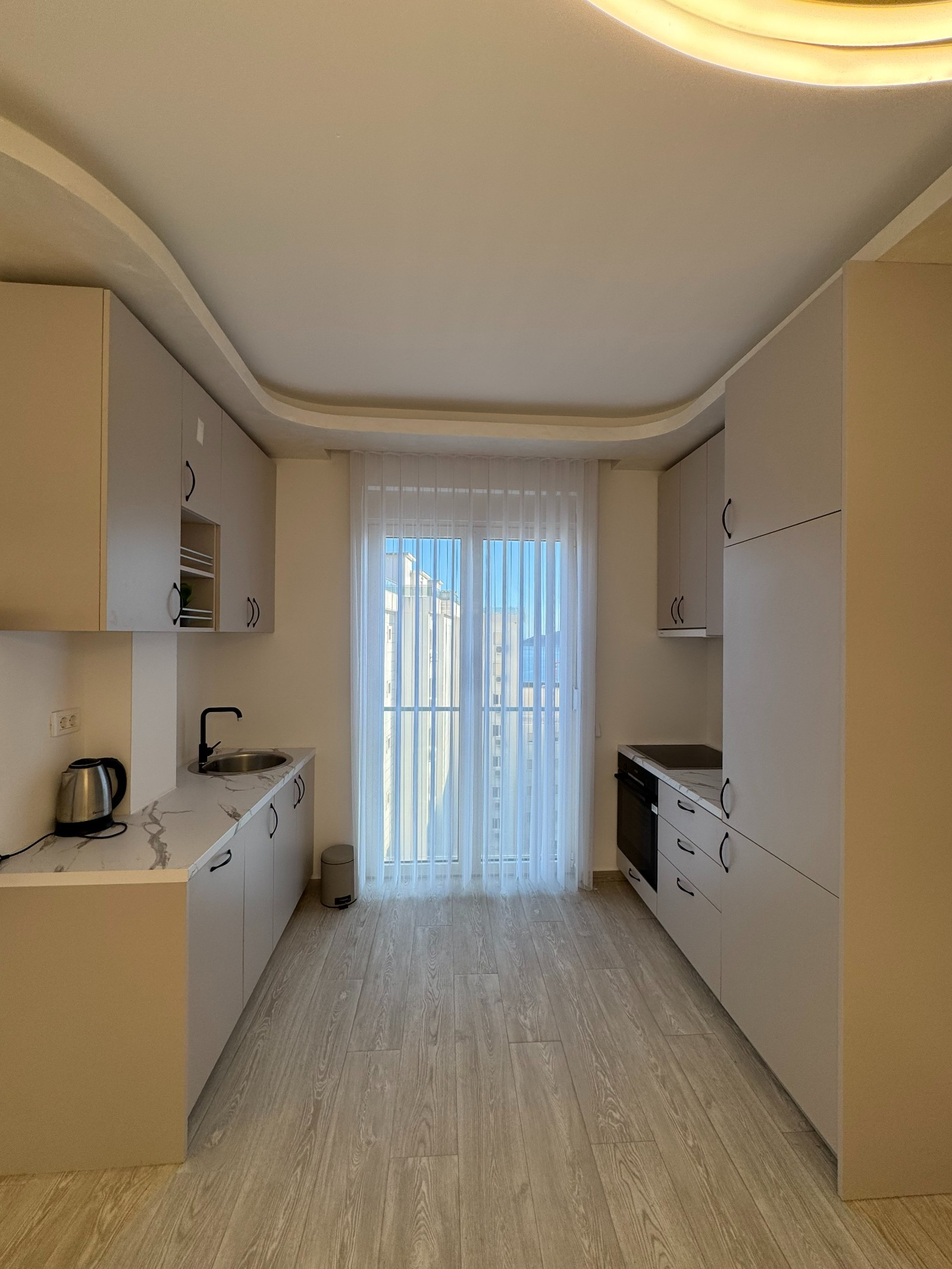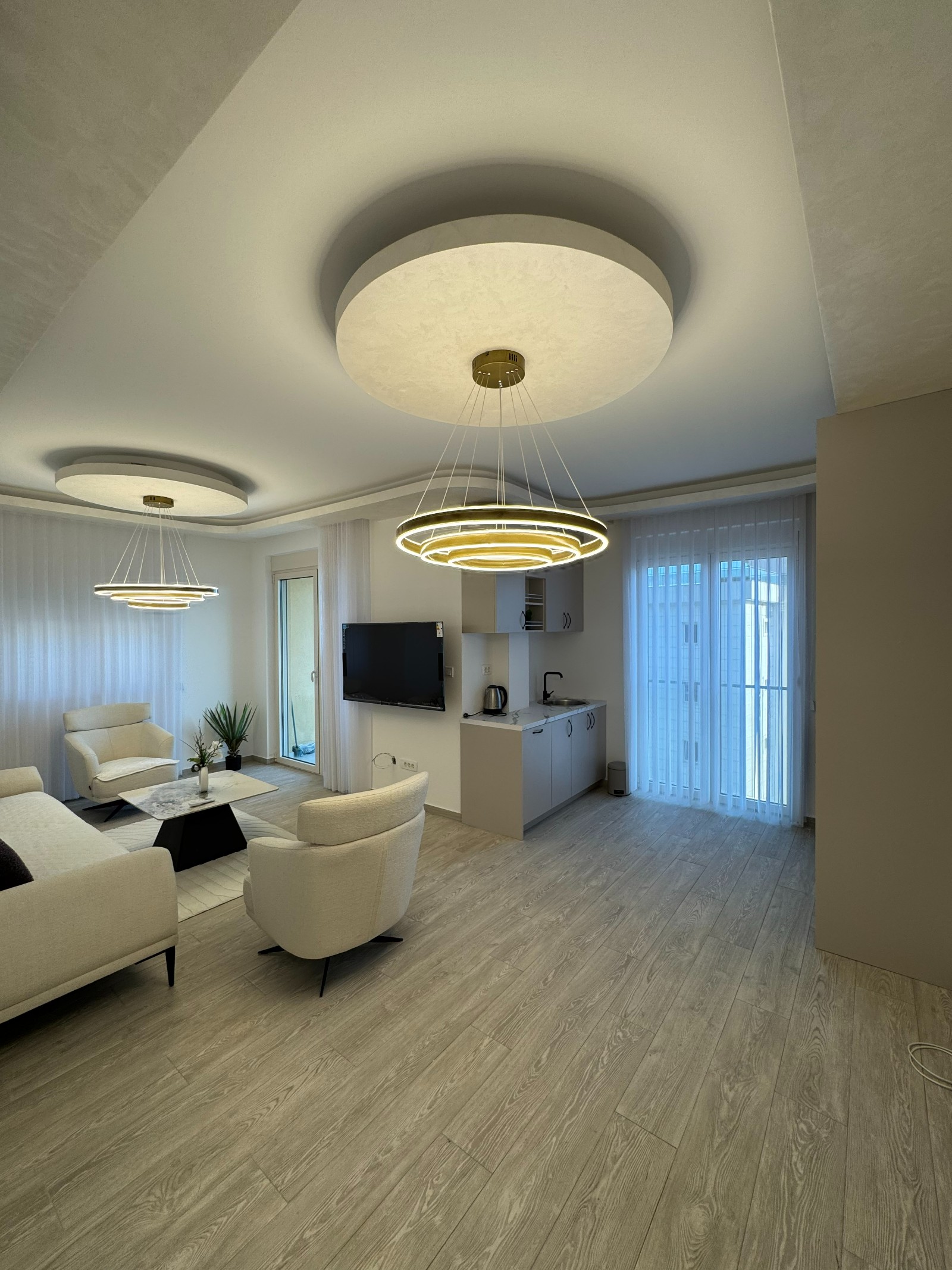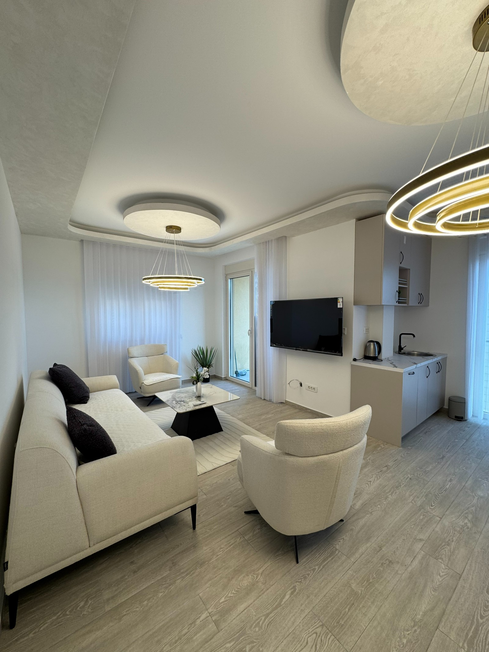 Sastoji se iz predsoblja, open space dnevnog boravka sa kuhinjom i trpezarijom, jedne spavaće sobe, dva kupatila i terase.