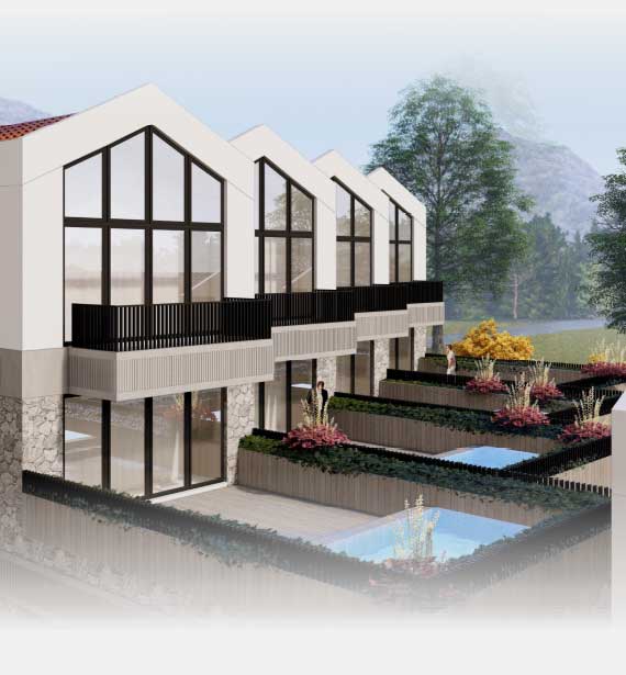 Odlikuje je savremena arhitektura sa velikim staklenim površinama, obilje prirodnog svjetla i pogled na mediteranski pejzaž, korišćenje vrhunskih prirodnih materijala: kamen, drvo i staklo, potpuna privatnost u uređenom ambijentu, blizina mora i ekskluzivnih sadržaja Tivta.