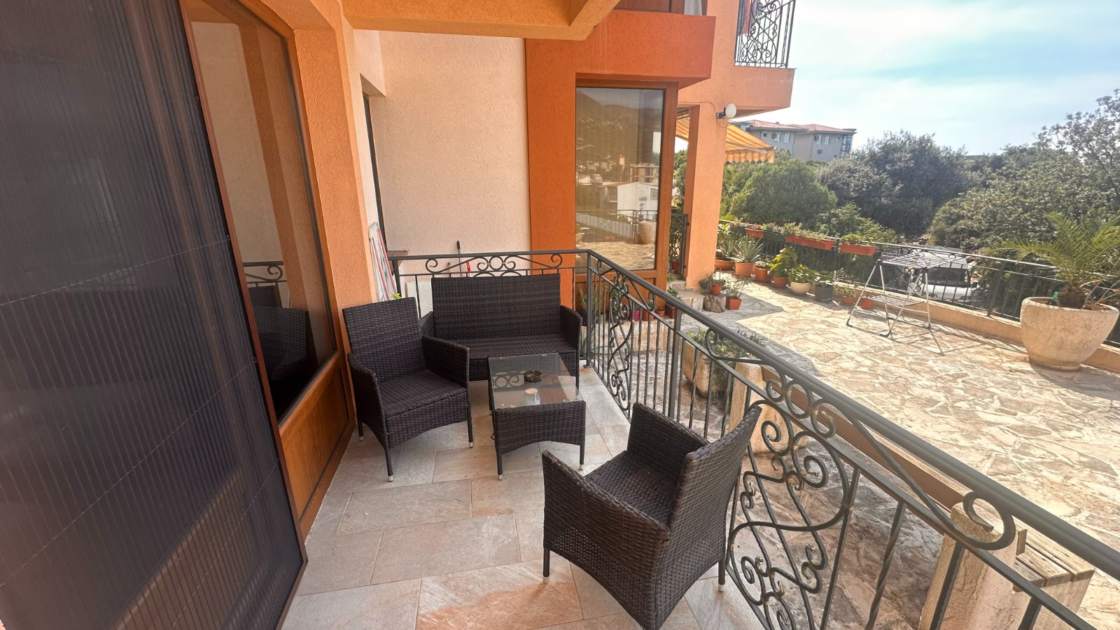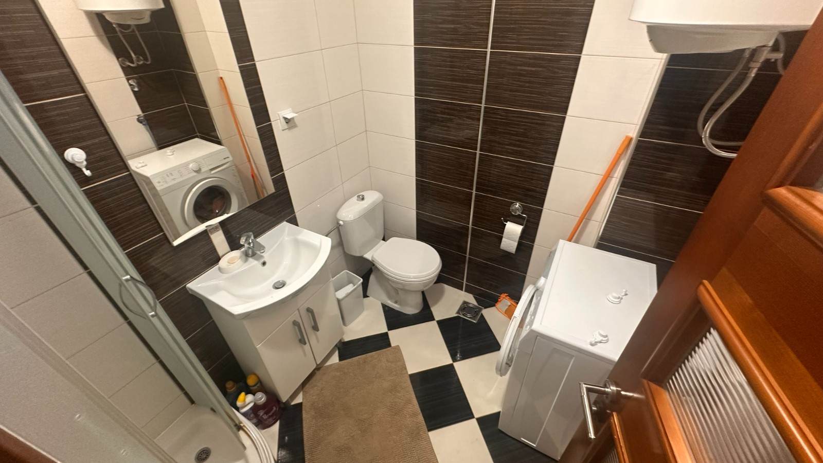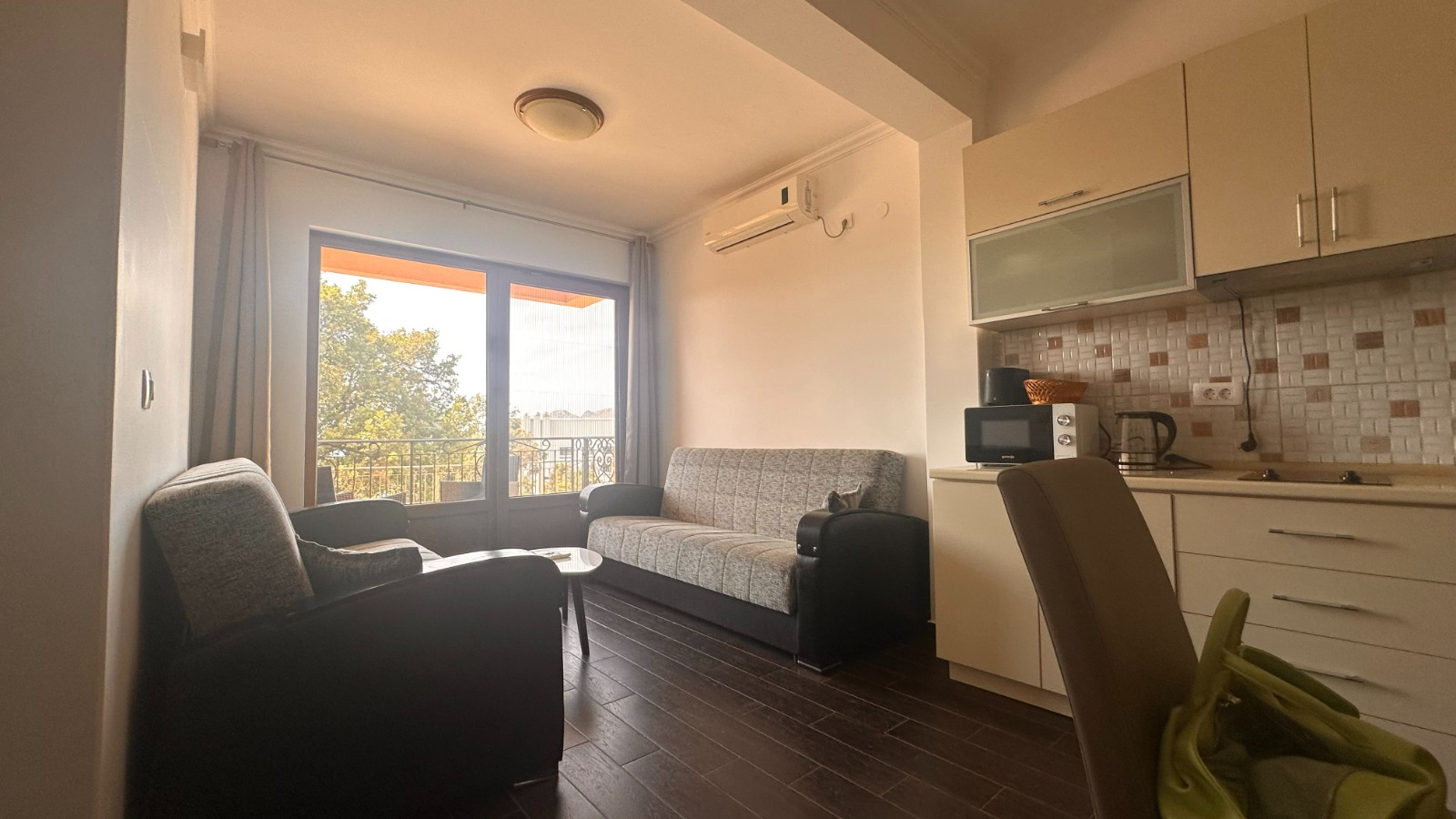 Sastoji se iz predsoblja, dnevnog boravka sa kuhinjom, spavaće sobe, kupatila i terase. Namješten i opremljen i odmah useljiv.