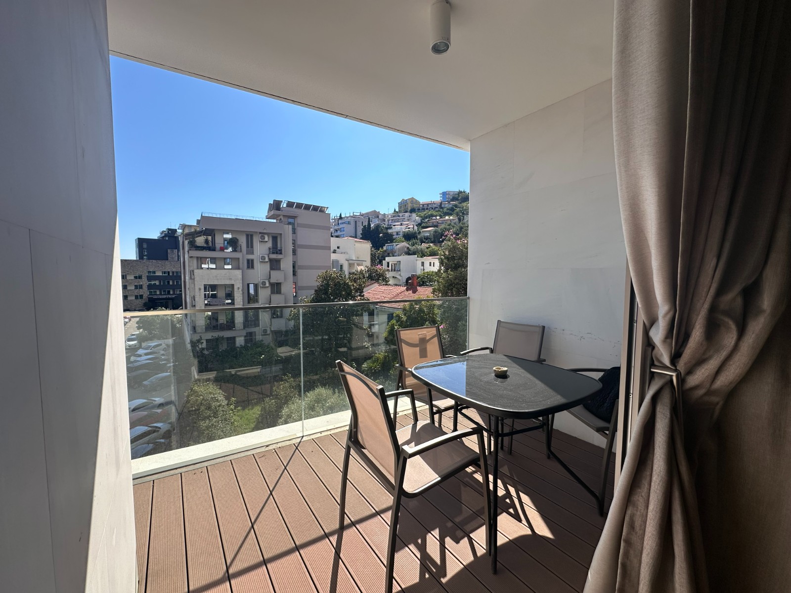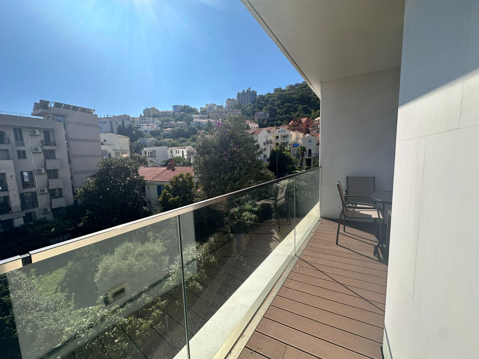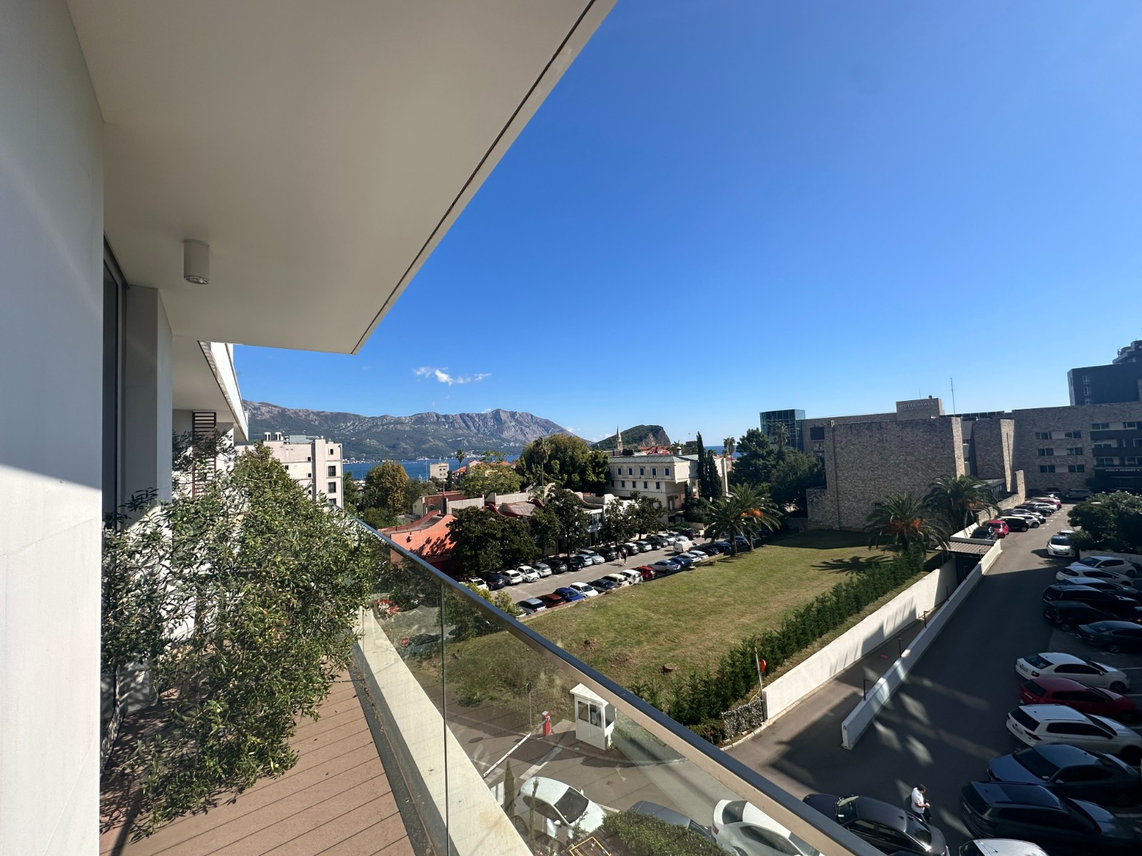 Odličan stan, smješten na drugom spratu u luksuznoj novoj zgradi. Radi se o novogradnji odlično pozicioniranoj u samom centru Budve na par koraka od starog grada. Stan se sastoji iz predsoblja, open space dnevnog boravka sa kuhinjom i trpezarijskim delom, jedne spavaće sobe, velikog kupatila i terase. Na terasu se izlazi iz dnevnog boravka i iz spavaće sobe. Stan je u odličnom stanju. Prodaje se kompletno namješten i opremljen sa garažnim mjestom koje je ušlo u cijenu stana. Osunčan je i svetao sa komfornom terasom koja je okrenuta ka Starom gradu i sa koje se pruža pogled na more.
