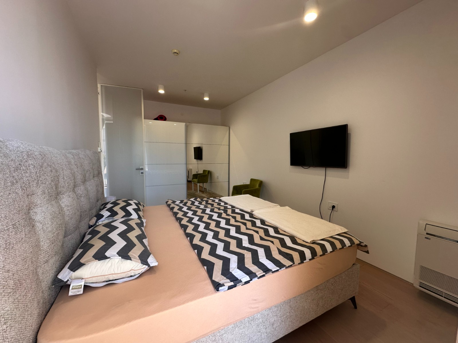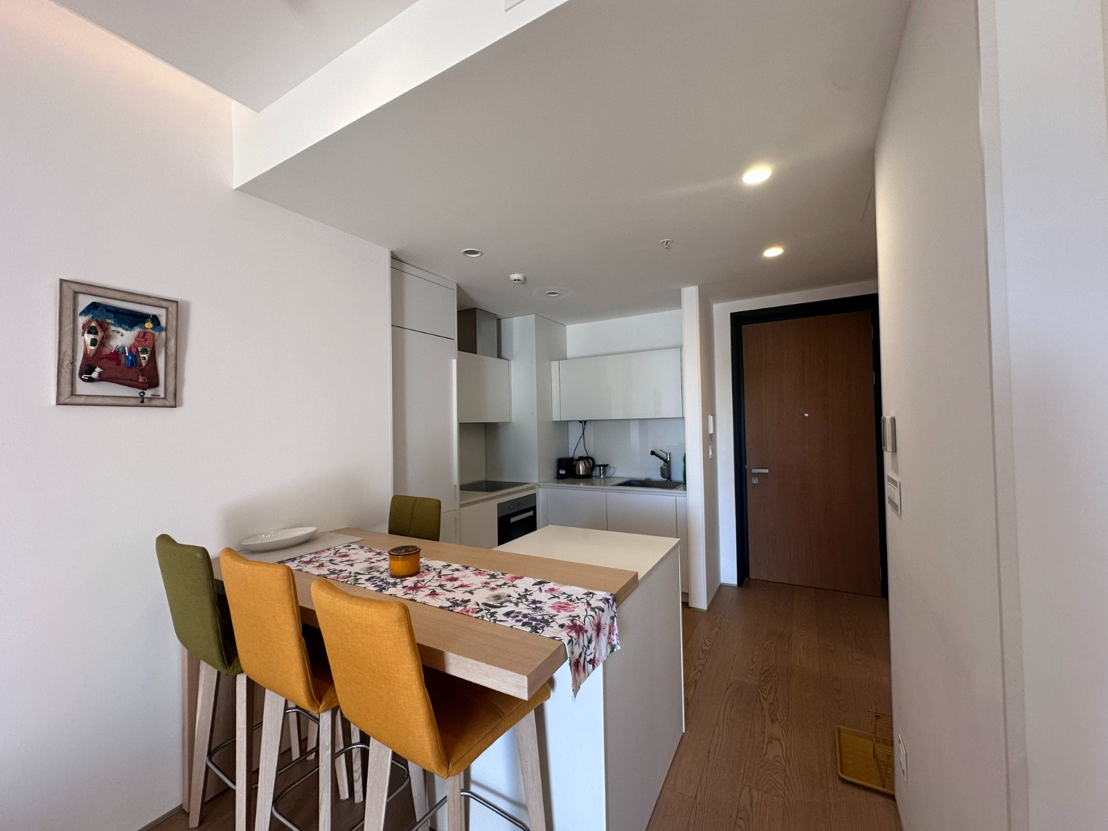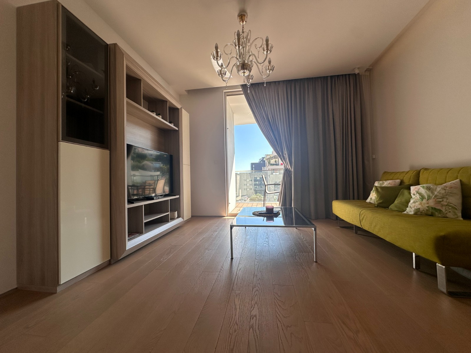 Odličan stan, smješten na drugom spratu u luksuznoj novoj zgradi. Radi se o novogradnji odlično pozicioniranoj u samom centru Budve na par koraka od starog grada. Stan se sastoji iz predsoblja, open space dnevnog boravka sa kuhinjom i trpezarijskim delom, jedne spavaće sobe, velikog kupatila i terase. Na terasu se izlazi iz dnevnog boravka i iz spavaće sobe. Stan je u odličnom stanju. Prodaje se kompletno namješten i opremljen sa garažnim mjestom koje je ušlo u cijenu stana. Osunčan je i svetao sa komfornom terasom koja je okrenuta ka Starom gradu i sa koje se pruža pogled na more.